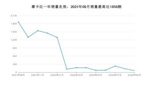 2022年9月,摩卡销量为65辆,同比下降96.5%,环比下降51.13%。2021年09月-2022年09月份,摩卡销量为8484辆,同比增长57.9%。