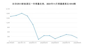2022年9月,本田CR-V新能源销量为209辆,同比下降87.03%,环比下降45.85%。2021年09月-2022年09月份,本田CR-V新能源销量为10179辆,同比下降72.85%。