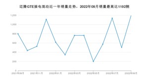 2022年9月,迈腾GTE插电混动销量为1192辆,同比增长49.37%,环比增长138.4%。2021年09月-2022年09月份,迈腾GTE插电混动销量为8960辆,同比增长606.07%。