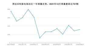 2022年9月,探岳GTE插电混动销量为321辆,同比下降57.09%,环比增长13.03%。2021年09月-2022年09月份,探岳GTE插电混动销量为5493辆,同比增长287.65%。