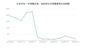 2022年9月,北京X7销量为105辆,同比下降94.54%,环比下降58.66%。2021年09月-2022年09月份,北京X7销量为11089辆,同比下降57.02%。