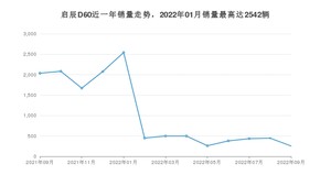 2022年9月,启辰D60销量为254辆,同比下降87.52%,环比下降43.18%。2021年09月-2022年09月份,启辰D60销量为13630辆,同比下降67.75%。