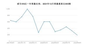 2022年9月,威马W6销量为186辆,同比下降70.94%,环比下降42.77%。2021年09月-2022年09月份,威马W6销量为6842辆,同比增长153.22%。