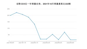 2022年9月,讴歌CDX销量为11辆,同比下降94.5%,环比持平。2021年09月-2022年09月份,讴歌CDX销量为1136辆,同比下降76.55%。