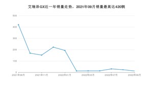 2022年9月,艾瑞泽GX销量为12辆,同比下降97.14%,环比下降47.83%。2021年09月-2022年09月份,艾瑞泽GX销量为1259辆,同比下降82.3%。