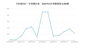 2022年9月,天际ME5销量为219辆,同比增长995%,环比下降40%。2021年09月-2022年09月份,天际ME5销量为4009辆,同比增长14%。