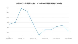 2022年9月,微蓝7销量为36辆,同比下降55%,环比下降50.68%。2021年09月-2022年09月份,微蓝7销量为868辆,同比增长19.39%。