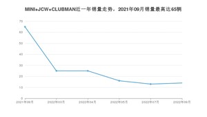 2022年9月,MINI JCW CLUBMAN销量为14辆,同比下降78.46%,2021年09月-2022年09月份,MINI JCW CLUBMAN销量为158辆,同比下降77.93%。