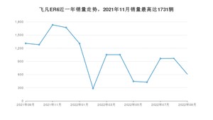 2022年9月,飞凡ER6销量为609辆,同比下降53.51%,环比下降37.09%。2021年09月-2022年09月份,飞凡ER6销量为13097辆,同比增长75.26%。