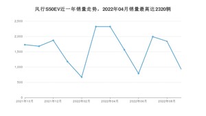 2022年9月,风行S50EV销量为927辆,环比下降49.62%。2021年09月-2022年09月份,风行S50EV销量为18866辆,