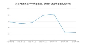 2022年9月,东南A5翼舞销量为25辆,同比下降56.9%,环比下降3.85%。2021年09月-2022年09月份,东南A5翼舞销量为380辆,同比下降73.7%。