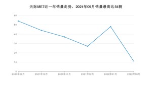 2022年9月,天际ME7销量为11辆,同比下降79.63%,2021年09月-2022年09月份,天际ME7销量为221辆,同比下降81.87%。