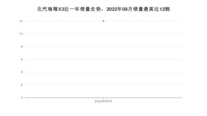 2022年9月,北汽瑞翔X3销量为12辆,2021年09月-2022年09月份,北汽瑞翔X3销量为12辆,