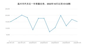 2022年10月,温州市汽车总销量为15132辆,同比增长0.12%,环比下降10.57%。2021年10月-2022年10月份,温州市总销量为197097辆,同比下降6.65%。在最近1年中,温州市销量在2021年12月达到最高,销量为20201辆。