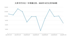 2022年10月,太原市汽车总销量为7095辆,同比下降47.1%,环比下降41.24%。2021年10月-2022年10月份,太原市总销量为149420辆,同比下降15.13%。在最近1年中,太原市销量在2021年12月达到最高,销量为16964辆。