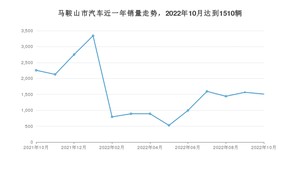2022年10月,马鞍山市汽车总销量为1510辆,同比下降33.1%,环比下降3.58%。2021年10月-2022年10月份,马鞍山市总销量为20687辆,同比下降32.04%。在最近1年中,马鞍山市销量在2022年01月达到最高,销量为3342辆。