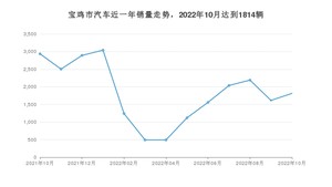 2022年10月,宝鸡市汽车总销量为1814辆,同比下降38.24%,环比增长12.39%。2021年10月-2022年10月份,宝鸡市总销量为23933辆,同比下降37.53%。在最近1年中,宝鸡市销量在2022年01月达到最高,销量为3041辆。