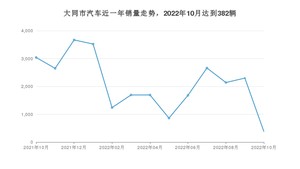 2022年10月,大同市汽车总销量为382辆,同比下降87.43%,环比下降83.38%。2021年10月-2022年10月份,大同市总销量为27529辆,同比下降34.18%。在最近1年中,大同市销量在2021年12月达到最高,销量为3669辆。