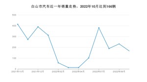 2022年10月,白山市汽车总销量为166辆,同比下降59.81%,环比下降28.45%。2021年10月-2022年10月份,白山市总销量为2541辆,同比下降45.08%。在最近1年中,白山市销量在2021年10月达到最高,销量为413辆。
