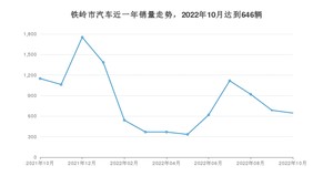 2022年10月,铁岭市汽车总销量为646辆,同比下降43.78%,环比下降5.83%。2021年10月-2022年10月份,铁岭市总销量为10948辆,同比下降29.62%。在最近1年中,铁岭市销量在2021年12月达到最高,销量为1752辆。