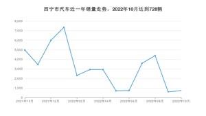 2022年10月,西宁市汽车总销量为728辆,同比下降85.36%,环比增长23.39%。2021年10月-2022年10月份,西宁市总销量为40667辆,同比下降38.88%。在最近1年中,西宁市销量在2022年01月达到最高,销量为7348辆。
