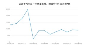 2022年10月,云浮市汽车总销量为897辆,同比下降31.42%,环比下降3.03%。2021年10月-2022年10月份,云浮市总销量为13805辆,同比下降13.35%。在最近1年中,云浮市销量在2022年01月达到最高,销量为2452辆。
