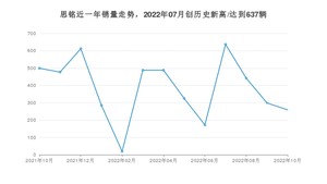 具体来看,在SUV方面,10月思铭的销量为259辆,同比下降48.1%,环比下降13.38%。2021年10月-2022年10月份累计销量为5002辆,较去年同期下降32.19%。