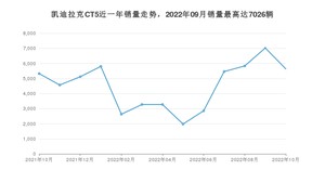 2022年10月,凯迪拉克CT5销量为5633辆,同比增长5.78%,环比下降19.83%。2021年10月-2022年10月份,凯迪拉克CT5销量为58784辆,同比下降15.68%。