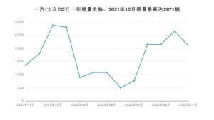 2022年10月,一汽-大众CC销量为2091辆,同比增长54.09%,环比下降21.18%。2021年10月-2022年10月份,一汽-大众CC销量为22168辆,同比下降11.42%。