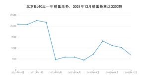 2022年10月,北京BJ40销量为668辆,同比下降67.95%,环比下降34.25%。2021年10月-2022年10月份,北京BJ40销量为15467辆,同比下降35.68%。
