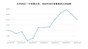 2022年10月,问界M5销量为3889辆,同比增长100.88%,环比下降22.65%。2021年10月-2022年10月份,问界M5销量为37634辆,同比增长1%。