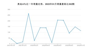 2022年10月,奥迪A7L销量为113辆,同比增长162.79%,环比下降23.65%。2021年10月-2022年10月份,奥迪A7L销量为1408辆,同比增长2%。