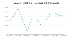 2022年10月,Macan销量为2072辆,同比增长38.6%,环比下降0.67%。2021年10月-2022年10月份,Macan销量为23313辆,同比下降29.03%。
