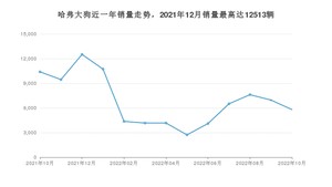 2022年10月,哈弗大狗销量为5799辆,同比下降44.2%,环比下降16.65%。2021年10月-2022年10月份,哈弗大狗销量为89492辆,同比下降14.23%。