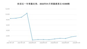 2022年10月,奕炫销量为1897辆,同比下降77.53%,环比增长19.38%。2021年10月-2022年10月份,奕炫销量为44962辆,同比增长7.6%。