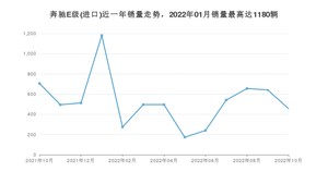2022年10月,奔驰E级(进口)销量为457辆,同比下降35.18%,环比下降28.71%。2021年10月-2022年10月份,奔驰E级(进口)销量为6865辆,同比下降49.93%。