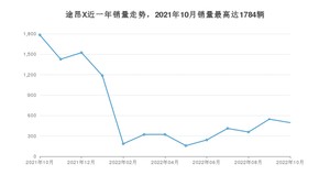 2022年10月,途昂X销量为495辆,同比下降72.25%,环比下降9.51%。2021年10月-2022年10月份,途昂X销量为8960辆,同比增长402.24%。