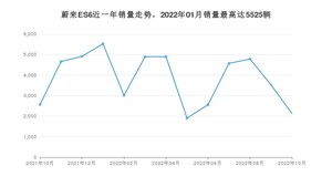 2022年10月,蔚来ES6销量为2126辆,同比下降17.08%,环比下降39.69%。2021年10月-2022年10月份,蔚来ES6销量为49921辆,同比增长27.81%。