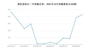 2022年10月,揽胜星脉销量为431辆,同比下降6.71%,环比增长12.24%。2021年10月-2022年10月份,揽胜星脉销量为2394辆,同比下降66.66%。