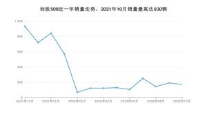 2022年10月,标致508销量为171辆,同比下降81.61%,环比下降10.47%。2021年10月-2022年10月份,标致508销量为4370辆,同比下降48.09%。