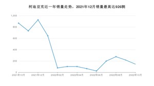 2022年10月,柯迪亚克销量为144辆,同比下降83.39%,环比下降33.64%。2021年10月-2022年10月份,柯迪亚克销量为4375辆,同比下降59.19%。