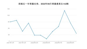2022年10月,添越销量为35辆,同比下降61.11%,环比下降58.33%。2021年10月-2022年10月份,添越销量为758辆,同比下降61.31%。