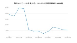 2022年10月,捷达VS7销量为1096辆,同比下降71.14%,环比下降2.32%。2021年10月-2022年10月份,捷达VS7销量为26644辆,同比下降38.35%。