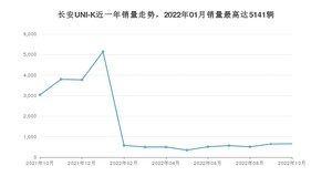 2022年10月,长安UNI-K销量为657辆,同比下降78.37%,环比增长1.7%。2021年10月-2022年10月份,长安UNI-K销量为20550辆,同比下降20.13%。