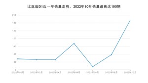 2022年10月,比亚迪D1销量为190辆,环比增长227.59%。2021年10月-2022年10月份,比亚迪D1销量为481辆,同比下降94.55%。