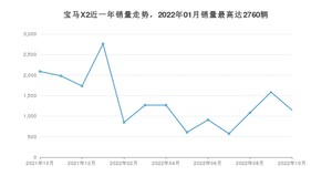 2022年10月,宝马X2销量为1147辆,同比下降45.07%,环比下降27.63%。2021年10月-2022年10月份,宝马X2销量为17852辆,同比下降37.86%。