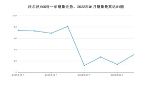 2022年10月,沃尔沃品牌总体销量达到11650辆,其中沃尔沃V60销量达到31辆,占品牌总销量的0.27%。
