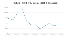 2022年10月,荣威i5销量为4818辆,同比下降44.11%,环比下降2.88%。2021年10月-2022年10月份,荣威i5销量为86706辆,同比下降35.29%。