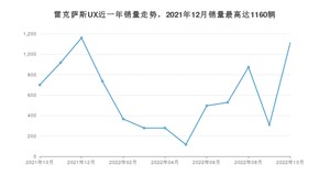2022年10月,雷克萨斯UX销量为1112辆,同比增长58.86%,环比增长263.4%。2021年10月-2022年10月份,雷克萨斯UX销量为7868辆,同比下降2.5%。