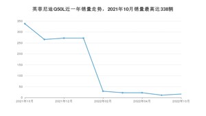2022年10月,英菲尼迪Q50L销量为16辆,同比下降95.27%,2021年10月-2022年10月份,英菲尼迪Q50L销量为1248辆,同比下降81.35%。
